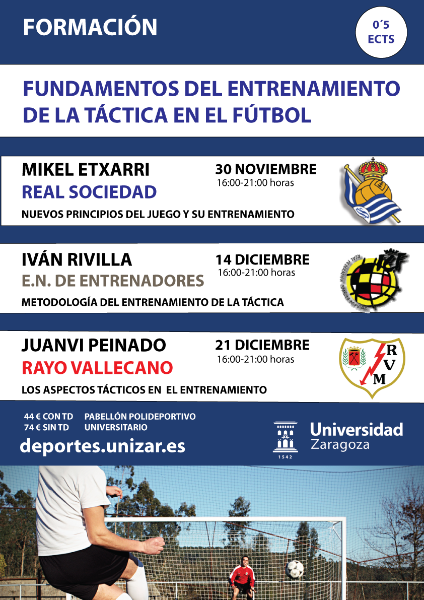 El Servicio de Actividades Deportivas organiza el curso de Fundamentos de entrenamiento de la táctica en el fútbol, con la participación de entrenadores de la Real Sociedad y el Rayo Vallecano, entre otros. Consulta las fechas, el programa y precio de éste y otros cursos en el siguiente enlace del programa "Formación y deporte".