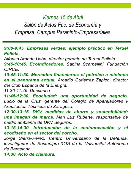 15 abril - Jornada Empresa verde, el medio ambiente desde el punto de vista económico