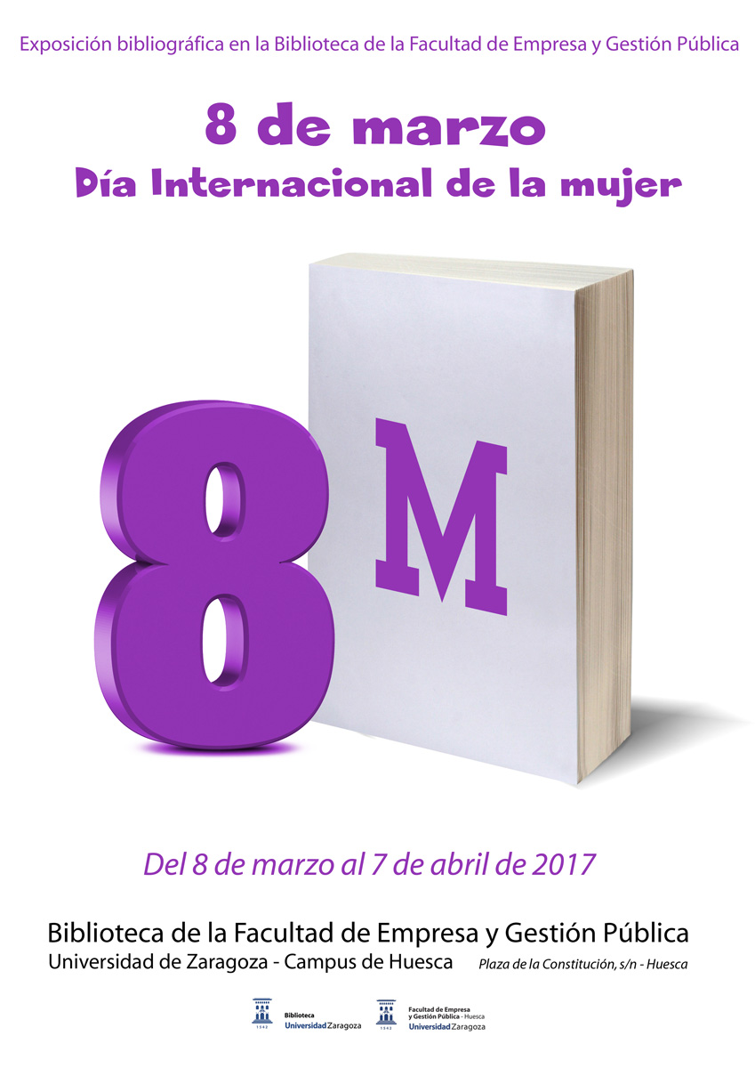 Con motivo de la celebración el 8 de marzo del Día Internacional de la mujer, la Biblioteca de la Facultad de Empresa y Gestión Pública de Huesca ha preparado una exposición bibliográfica con sus fondos en los que la mujer y las mujeres son los protagonistas. Los fondos multidisciplinares de nuestra biblioteca permiten al visitante que se acerque a ver la exposición y hojear sus libros, tener una amplia visión desde muy diferentes puntos de vista (filosófico, histórico, sociológico, psicológico, literario...)