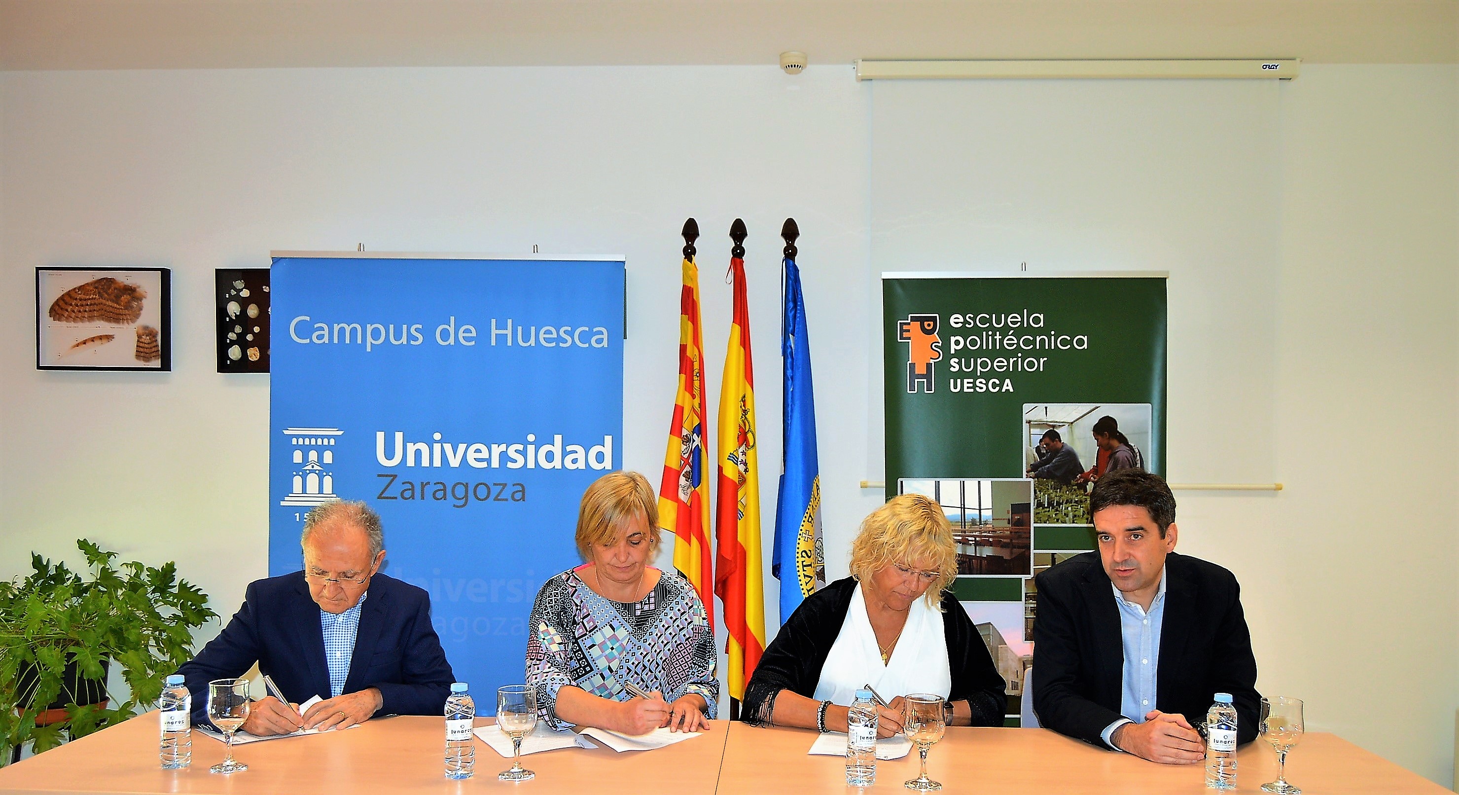 Pilar Zaragoza y Pilar Novales han suscrito un convenio entre ambas entidades por el que se desarrollarán diveras iniciativas relacionadas con la agronomía y el medio ambiente, en especial con la Escuela Politécnica Superior del Campus oscense, que está especializada en estos ámbitos