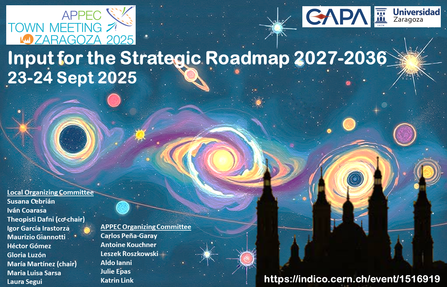 Este evento, organizado por CAPA, incluye ponencias plenarias y mesas redondas para cada tema, con el fin de garantizar una amplia participación de la comunidad. El Comité Organizador Local está dirigido por María Martínez Pérez (presidenta) y Theopisti Dafni (co-presidenta), profesoras del Departamento de Física Teórica e investigadoras del CAPA de la Universidad de Zaragoza.