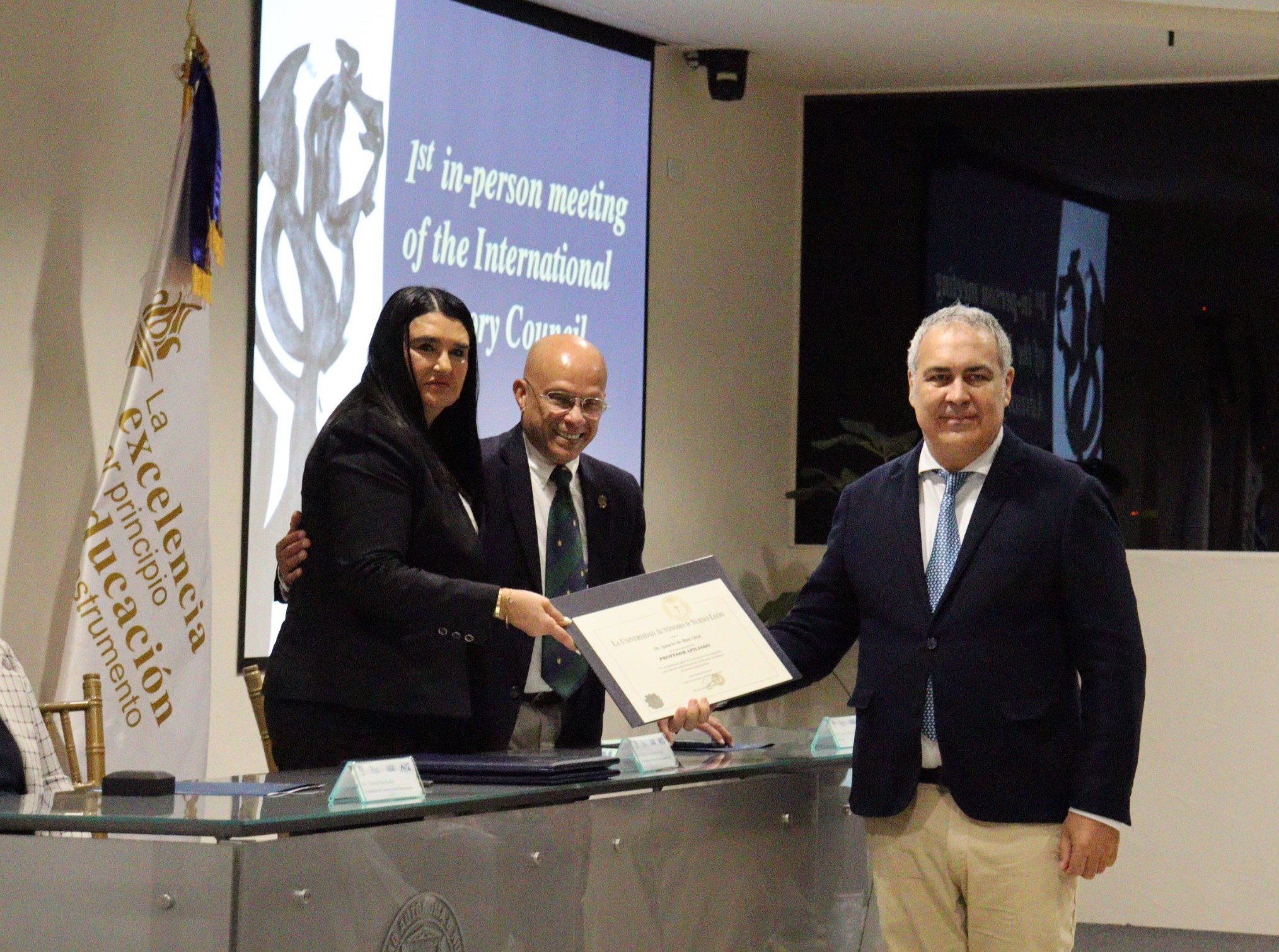 En el marco de esta visita la Dra. Sandra Nora González Díaz, Secretaria de Relaciones Internacionales de la UANL, hizo entrega al Dr. Ignacio de Blas del nombramiento de Profesor Afiliado y se firmó un acuerdo de colaboración académica y científica con la Long Island University de Estados Unidos, cuya Decana, la Dra. Carmen Fuentealba, preside de este consejo consultivo internacional.