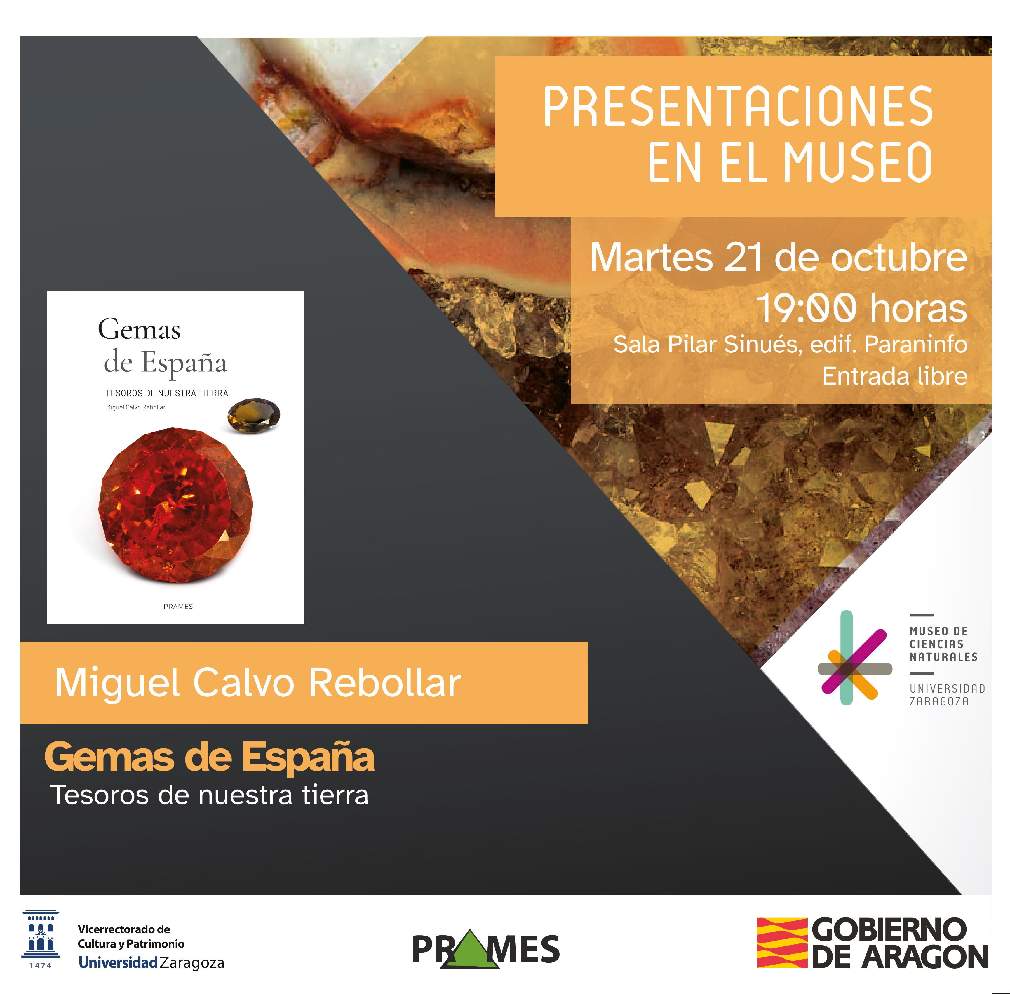 La nueva obra de Miguel Calvo, «Gemas de España. Tesoros de nuestra tierra» editada por Prames, recopila la gran variedad de minerales españoles que son aptos para la talla. Las gemas causan fascinación por su belleza, distinción y simbolismo, y desde siempre se asocian al poder y la riqueza. Aunque España no es un país famoso por su producción de piedras preciosas, las amatistas de Cartagena o el azabache turolense fueron famosos a nivel mundial en otras épocas. Desde el azabache hasta la variscita, el lector puede descubrir la historia 76 minerales distribuidos por toda la geografía española. A través de sus más de 300 páginas, el autor realiza una revisión de la gemología española desde el Neolítico antiguo hasta la actualidad y dando a conocer en detalle los tesoros de nuestra tierra.