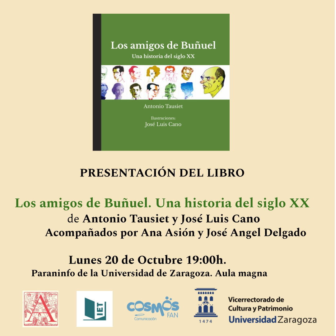 Hoy, lunes 20 de octubre, a las 19:00h en el Aula Magna del Paraninfo de la Universidad de Zaragoza, se presentará el libro Los amigos de Buñuel. Una historia del siglo XX de Antonio Tausiet y José Luis Cano.
