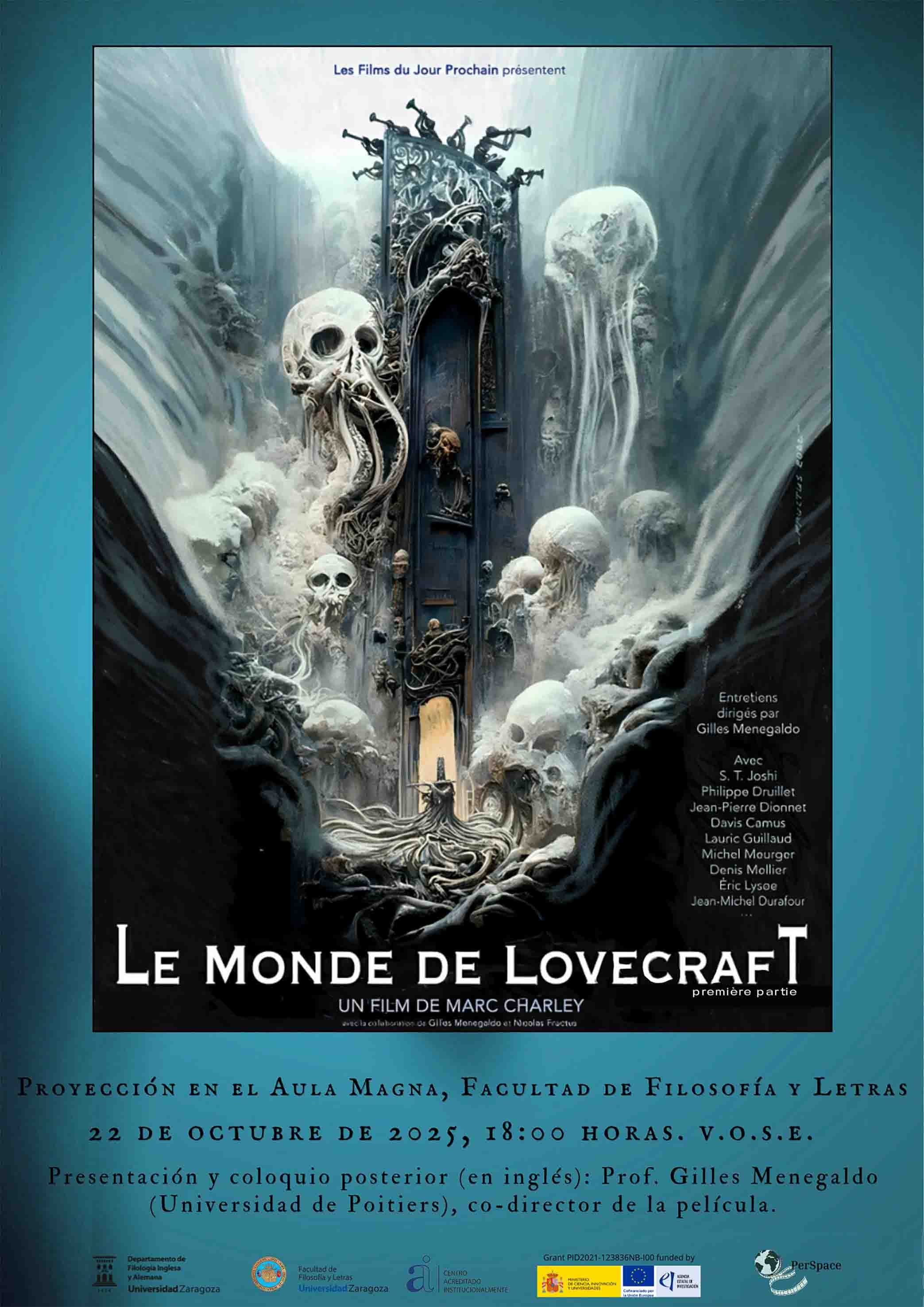 El próximo miércoles, día 22 de octubre, en el Aula Magna de la Facultad de Filosofía y Letras, a las 18.00 horas, se proyectará la película Le monde de Lovecraft, de Marc Charley.
