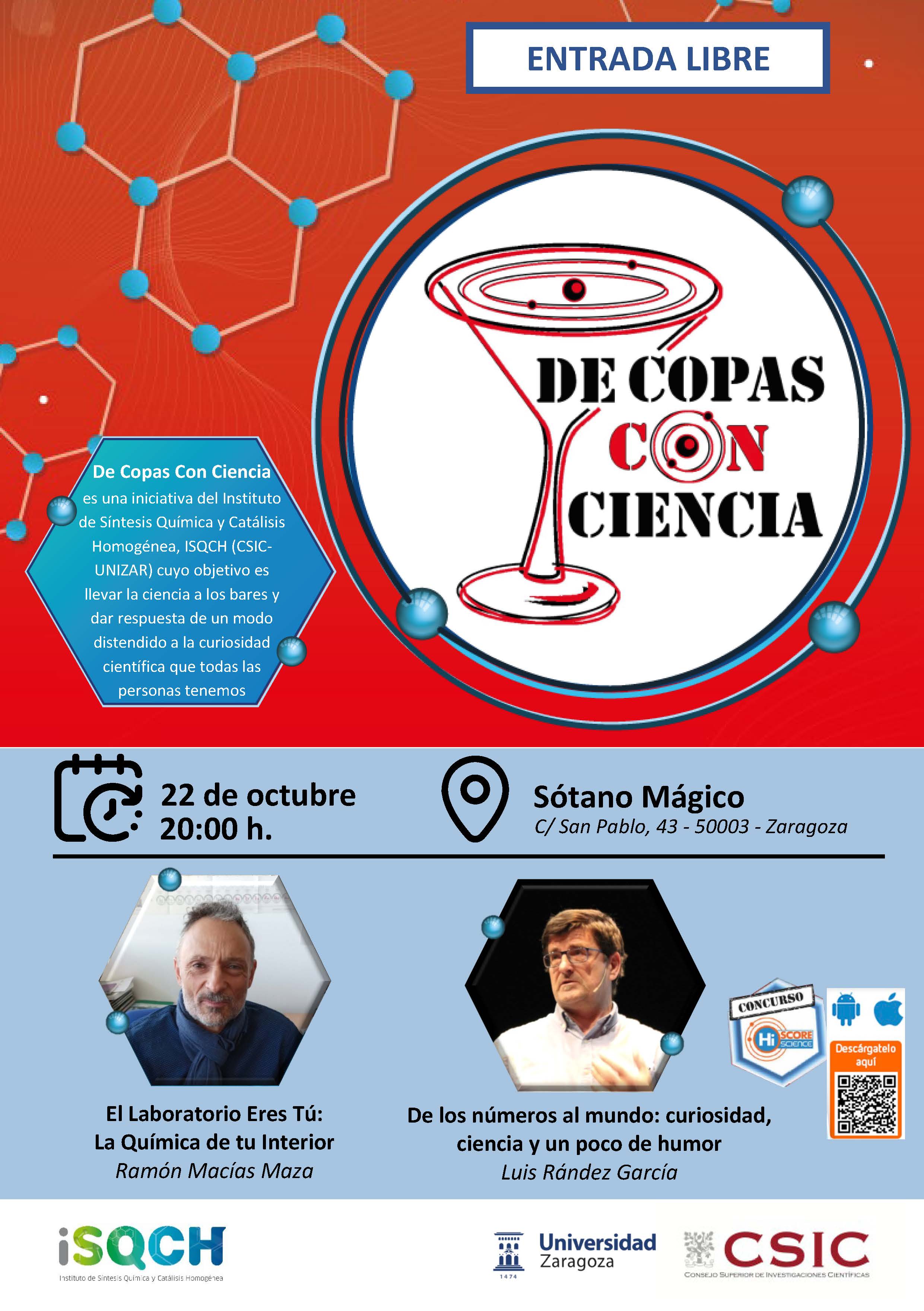La actividad está organizada por el Instituto de Síntesis Química y Catálisis Homogénea, ISQCH, instituto mixto del CSIC y la Universidad de Zaragoza y se repite de forma periódica, los últimos jueves de cada mes a las 20h en El Sótano Mágico