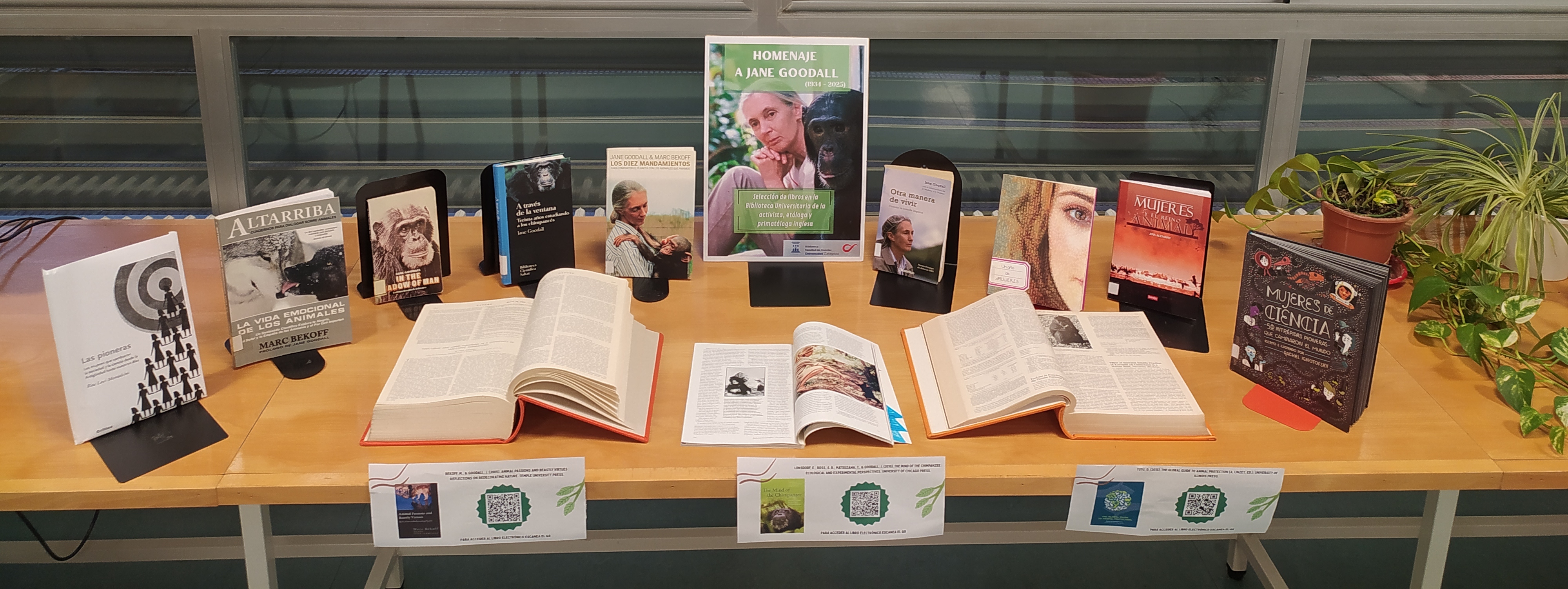 Desde la Biblioteca de Ciencias hemos querido hacerle un pequeño homenaje reuniendo en una exposición los libros y artículos escritos por y sobre Jane Goodall que tienen las bibliotecas de la Universidad de Zaragoza en su colección.