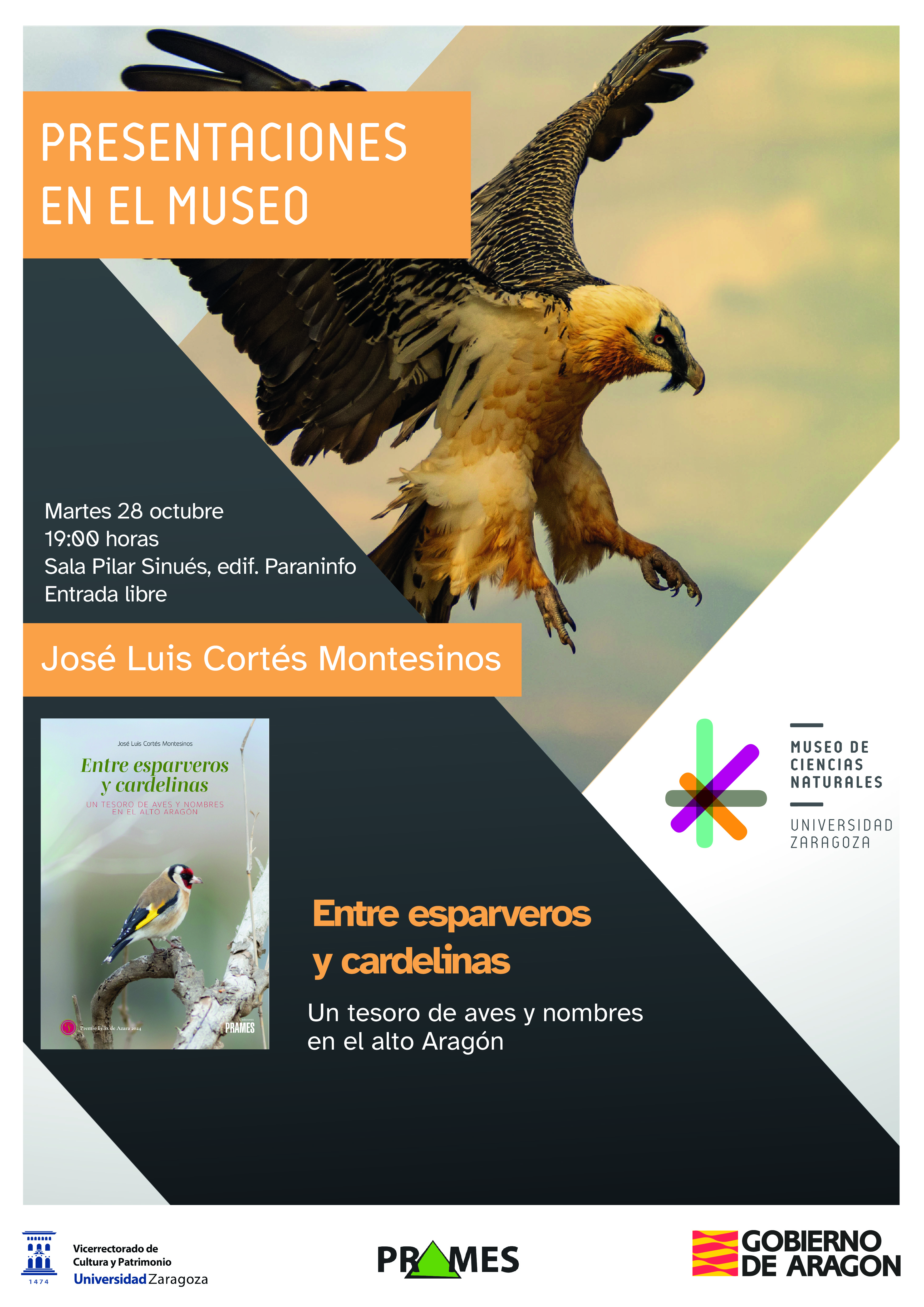 “Entre esparveros y cardelinas. Un tesoro de aves y nombres en el Alto Aragón” es la quinta obra del biólogo y comunicador científico José Luis Cortés, editado por Prames. Este nuevo libro dedicado a las aves altoaragonesas, no es una simple recopilación de los distintos pájaros que hay en esta región sino que aúna el patrimonio natural y cultural oscense a partir de los nombres populares, refranes y anécdotas protagonizados por estos animales. Su significado nos habla de nuestra memoria como especie, de un tiempo en que vivíamos más conectados a la naturaleza. Entre esparveros y cardelinas nos recuerda que las aves y sus nombres son un tesoro que debemos conservar.