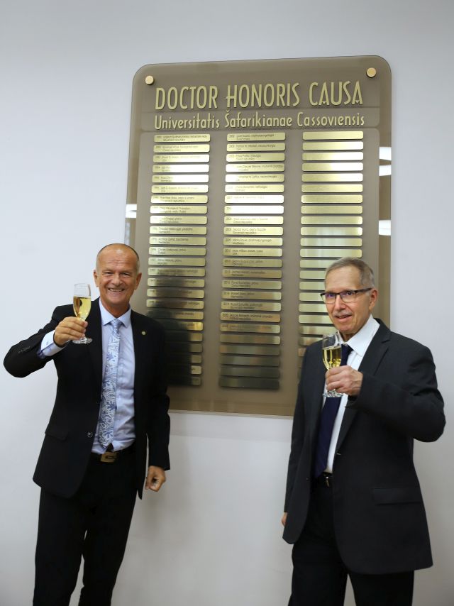 El profesor Lawrence R. (Larry) Falvello, catedrático de Química Inorgánica de la Universidad de Zaragoza, ha sido distinguido con el título de doctor honoris causa por la Universidad Pavol Jozef Šafárik (UPJŠ) de Košice en Eslovaquia. El acto académico tuvo lugar el pasado 21 de octubre de 2025 en el Auditorio Histórico del Rectorado de la UPJŠ en Košice y estuvo presidido por el rector Daniel Pella, quien le hizo entrega del diploma y medalla acreditativos de la distinción. La ceremonia contó con la presencia de los miembros del Consejo Internacional de la UPJŠ, de otros destacados representantes de la UPJŠ y de otras universidades y de la Academia Eslovaca de Ciencias. Así mismo, numerosos integrantes de la comunidad académica y antiguos alumnos del Profesor Falvello también estuvieron presentes.