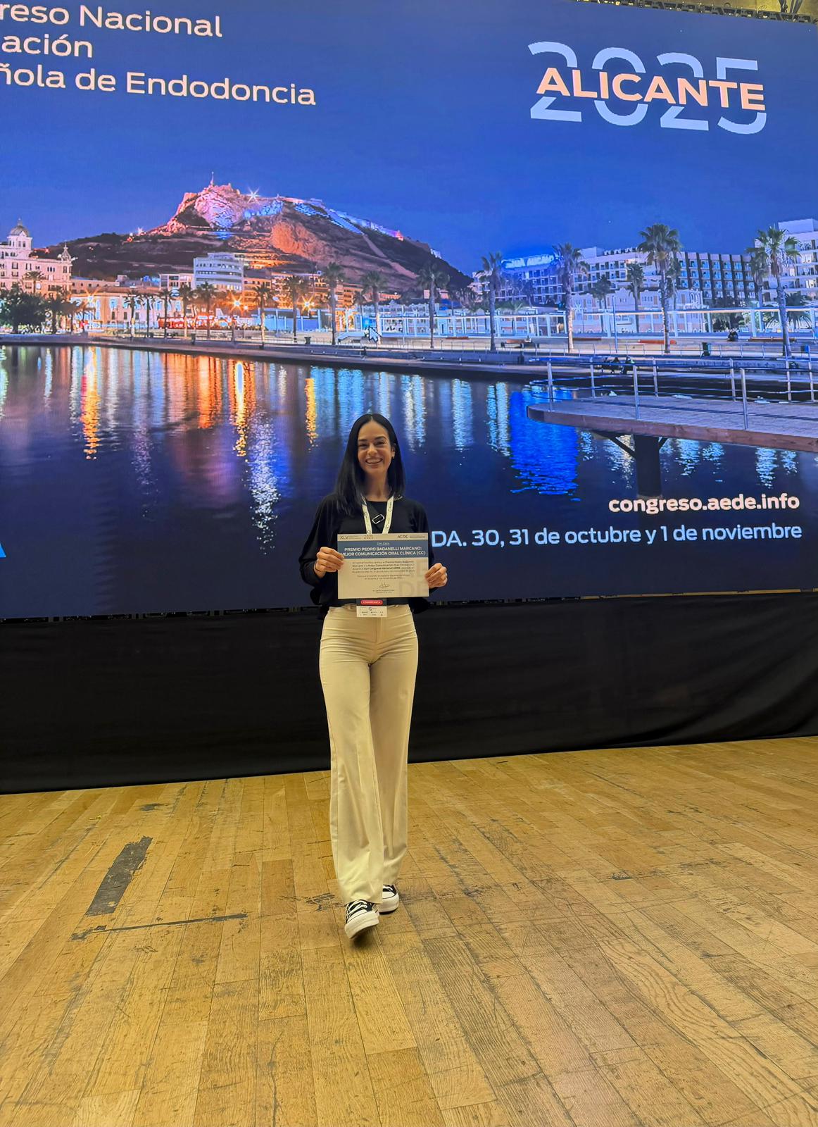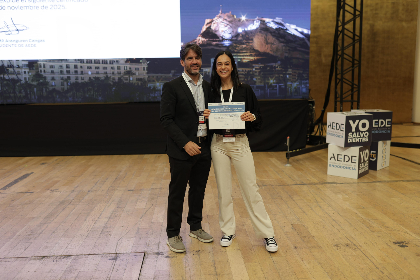 Nuria Castells Gasa ha sido la ganadora del premio al mejor caso clínico de esta edición con el titulado ‘Manejo de un incisivo central superior con surco palatogingival tipo III y doble raíz’. Además Alberto Lizáldez Garrido, también del Máster oscense, ha quedado como finalista con su trabajo ‘Traumatología dental e hidróxido de calcio: tratamiento de grandes lesiones endodónticas’.