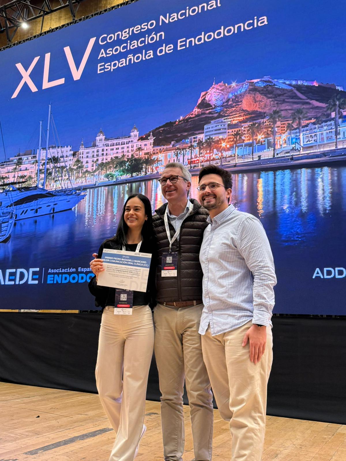 Este mismo galardón lo obtuvieron Pilar Villarte y Oliver Valencia, también del Máster en Endodoncia del Campus de Huesca, por un tratamiento de carácter multidisciplinar para salvar piezas afectadas por reabsorción cervical invasiva, presentado en el 41 Congreso de la Asociación Española de Endodoncia. Un año antes, el 40 Congreso de esta entidad también había adjudicado este premio al trabajo ‘Manejo clínico de una premolar inferior con tres raíces independientes, perforación y parestesia del labio inferior’, firmado por Oliver Valencia; a la par que Andrea Pérez y Blanca Peco, igualmente del Máster del Campus de Huesca, quedaban finalistas. Ya en el 39 congreso, este galardón se había venido a la capital altoaragonesa por el caso ‘Regeneración pulpar y rehabilitación estética de un 2.1 con ápice abierto’, desarrollado por Sara Abizanda.