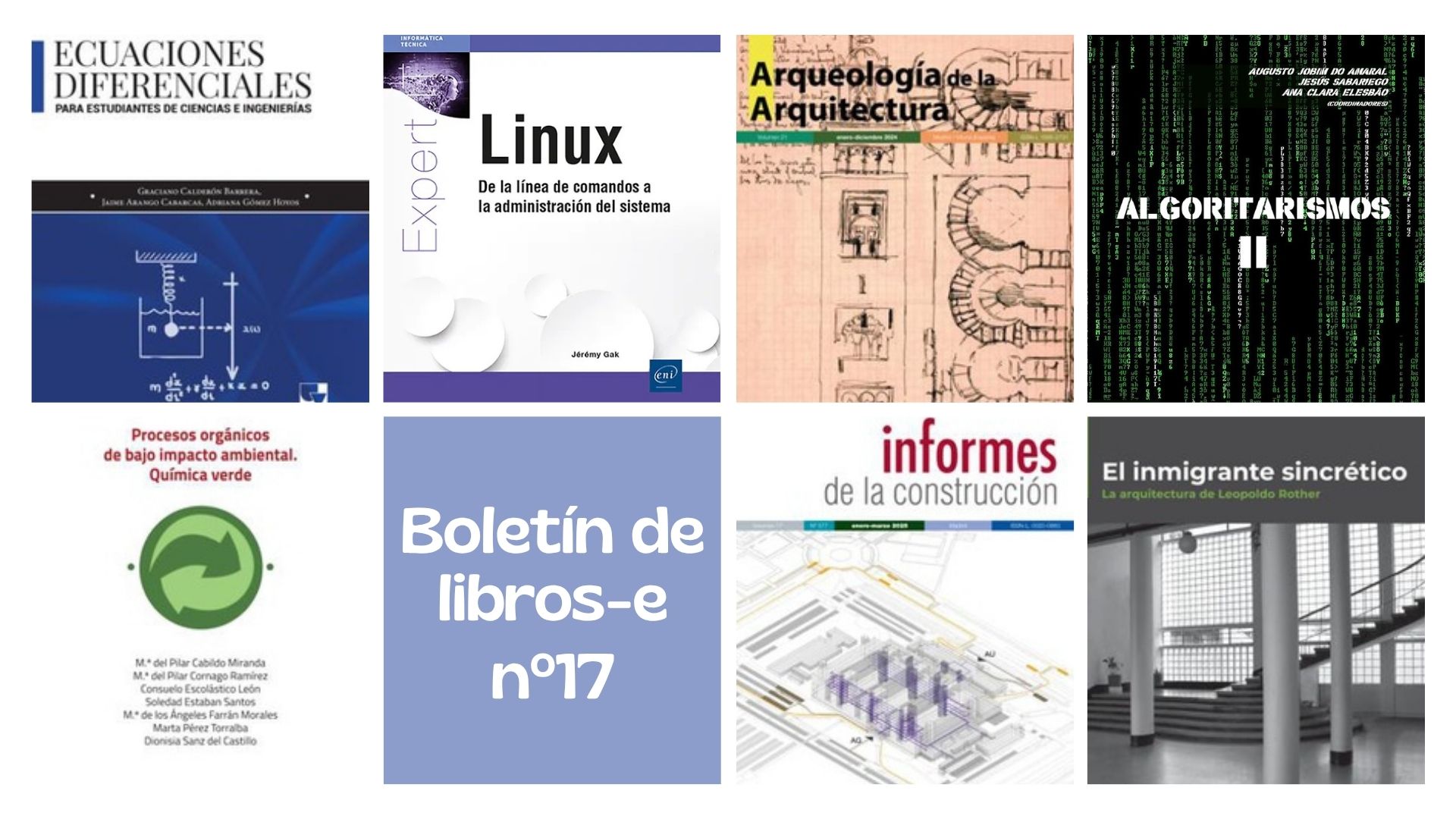 ¡Libros, libros, libros! Llega un nuevo boletín de libros electrónicos para satisfacer tu curiosidad sobre temas de arquitectura, urbanismo, informática, química e ingeniería. Pinchando en las portadas de los libros-e del PDF, podrás acceder a las colecciones virtuales que complementan los fondos de la biblioteca Hypatia (EINA) durante los 365 días/24 horas.