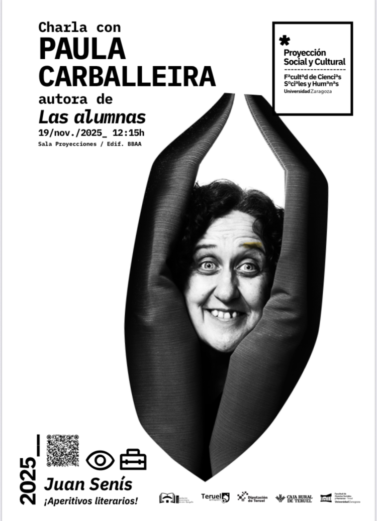 En el marco de los Aperitivos literarios, y de las actividades organizadas por la Comisión de Proyección Social y Cultural, el próximo 19 de noviembre tendremos el placer de contar con la presencia de la escritora, actriz y narradora oral gallega Paula Carballeira, con la que conversaremos acerca de su obra Las alumnas, gracias a la cual fue galardonada con el Premio Nacional de Literatura Dramática en 2023. El presente encuentro se desarrolla gracias a la Fundación Universitaria Antonio Gargallo, dentro de su programa de ayudas a actividades culturales.