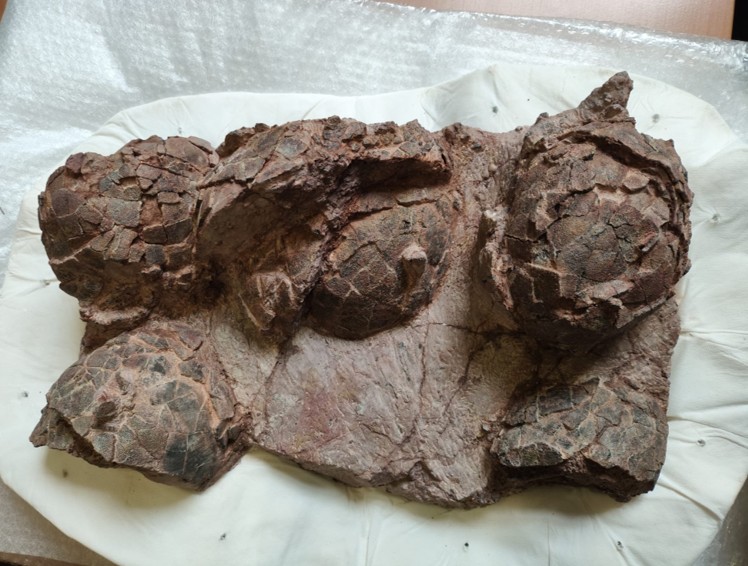 Nido de huevos de dinosaurio titanosaurio de 70 millones de años recuperados en el yacimiento de Santa Marina (Loarre). Fotografía: Museo de Ciencias Naturales de la Universidad de Zaragoza.