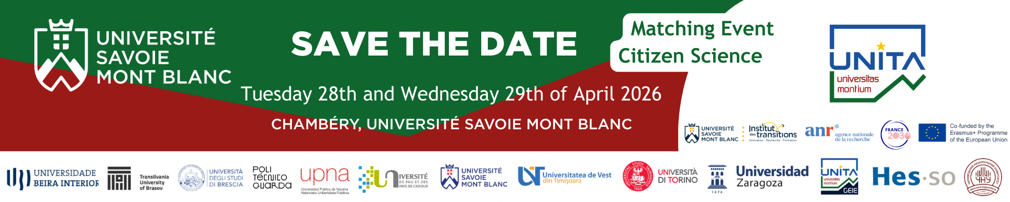 Este Matching Event está abierto a personas de todos los campos de investigación y tiene como objetivo trabajar de manera colectiva en torno a la ciencia ciudadana, así como fortalecer la comunidad UNITA mediante encuentros entre investigadores y proyectos colaborativos.