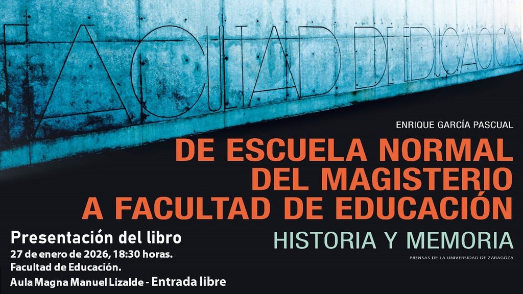El próximo día 27 de enero de 2026, a las 18:30h., se va a presentar el libro "De Escuela Normal del Magisterio a Facultad de Educación. Historia y memoria", escrito por el anterior Decano, Enrique García Pascual en el contexto de la exposición de los 175 años de los estudios de Magisterio en Zaragoza.