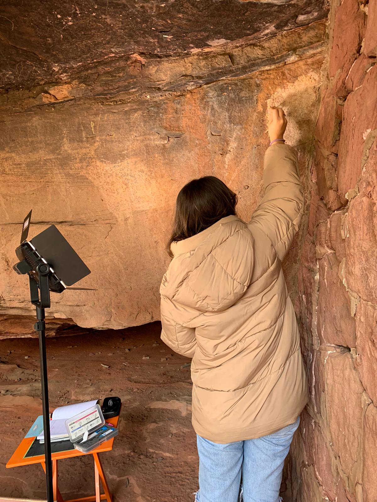 Claudia Serrano trabaja en investigación de arte rupestre al aire libre en la zona de Albarracín, en concreto en los abrigos de los Toros del Prado del Navazo, Cocinilla del Obispo, Los Toros del barranco de las Olivanas, Cabras Blancas y Ceja de Piezarrodilla. Y explica que “una monitorización ambiental continua permite analizar las condiciones de conservación a tiempo real, con datos continuos y fiables. De manera que podemos detectar situaciones de riesgo de un modo mucho más eficaz, así como comprender mejor los procesos de deterioro”.