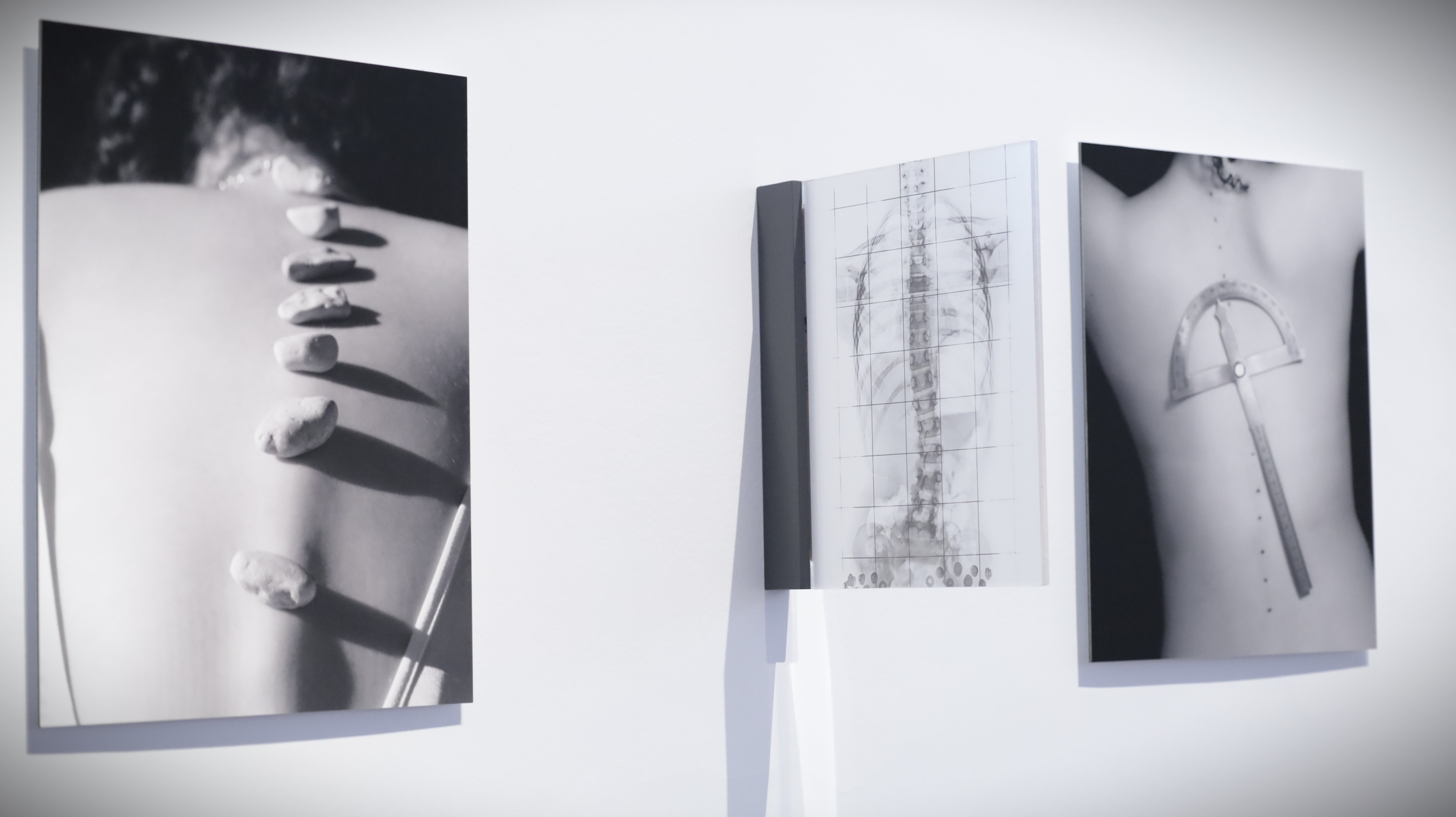 La exposición establece un sugerente paralelismo entre la columna vertebral de Carla y la columna del Mausoleo Romano de Fabara. A partir de esta conexión, la artista reflexiona sobre los cánones clásicos de belleza y proporción en la arquitectura y su progresiva transición hacia la aceptación de la imperfección, trasladando ese recorrido al cuerpo humano.