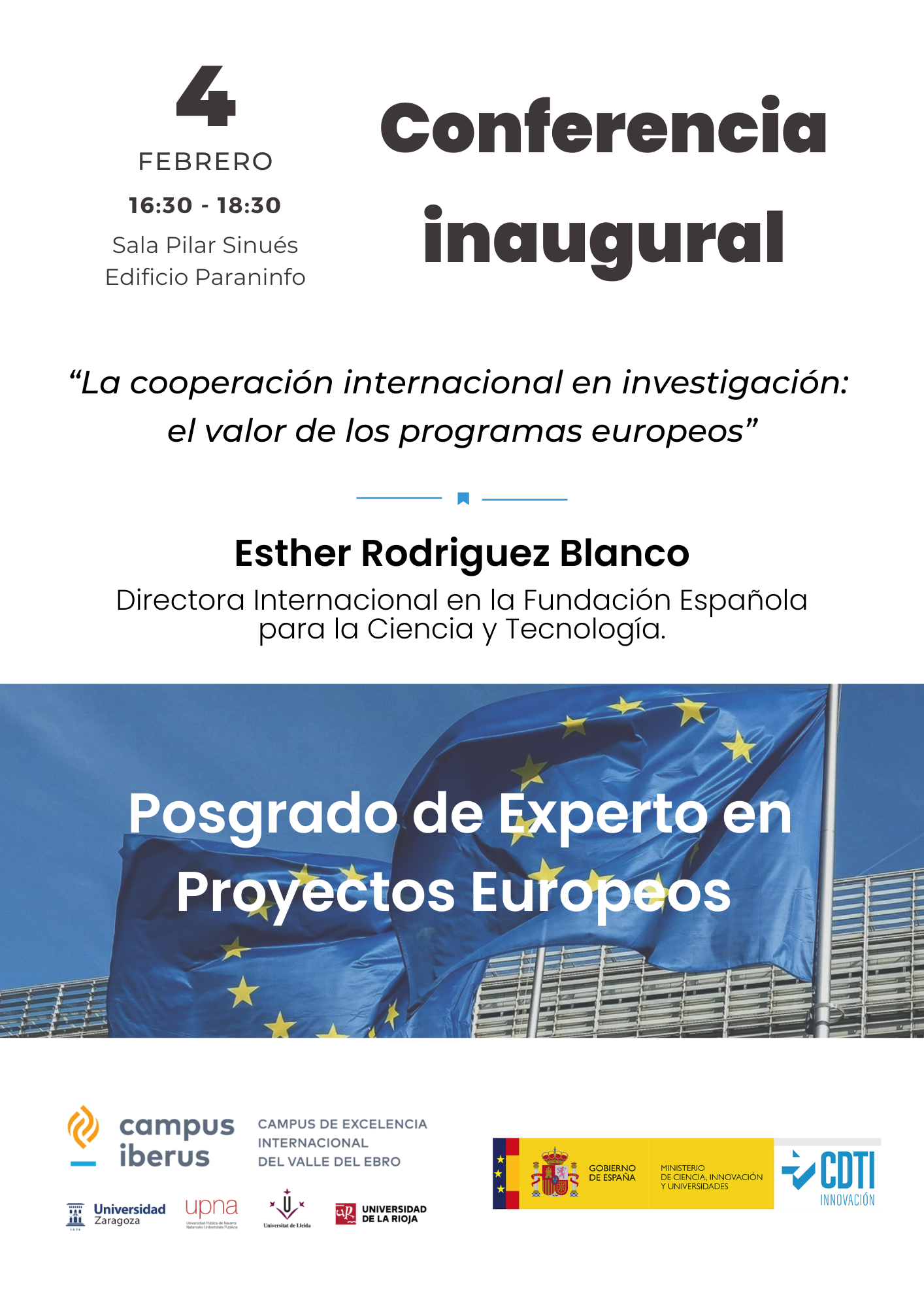 El próximo martes, 4 de febrero, tendrá lugar la conferencia inaugural de una nueva edición del Posgrado de Experto en Proyectos Europeos, organizada por el consorcio Campus Iberus, en el Edificio Paraninfo de la Universidad de Zaragoza.