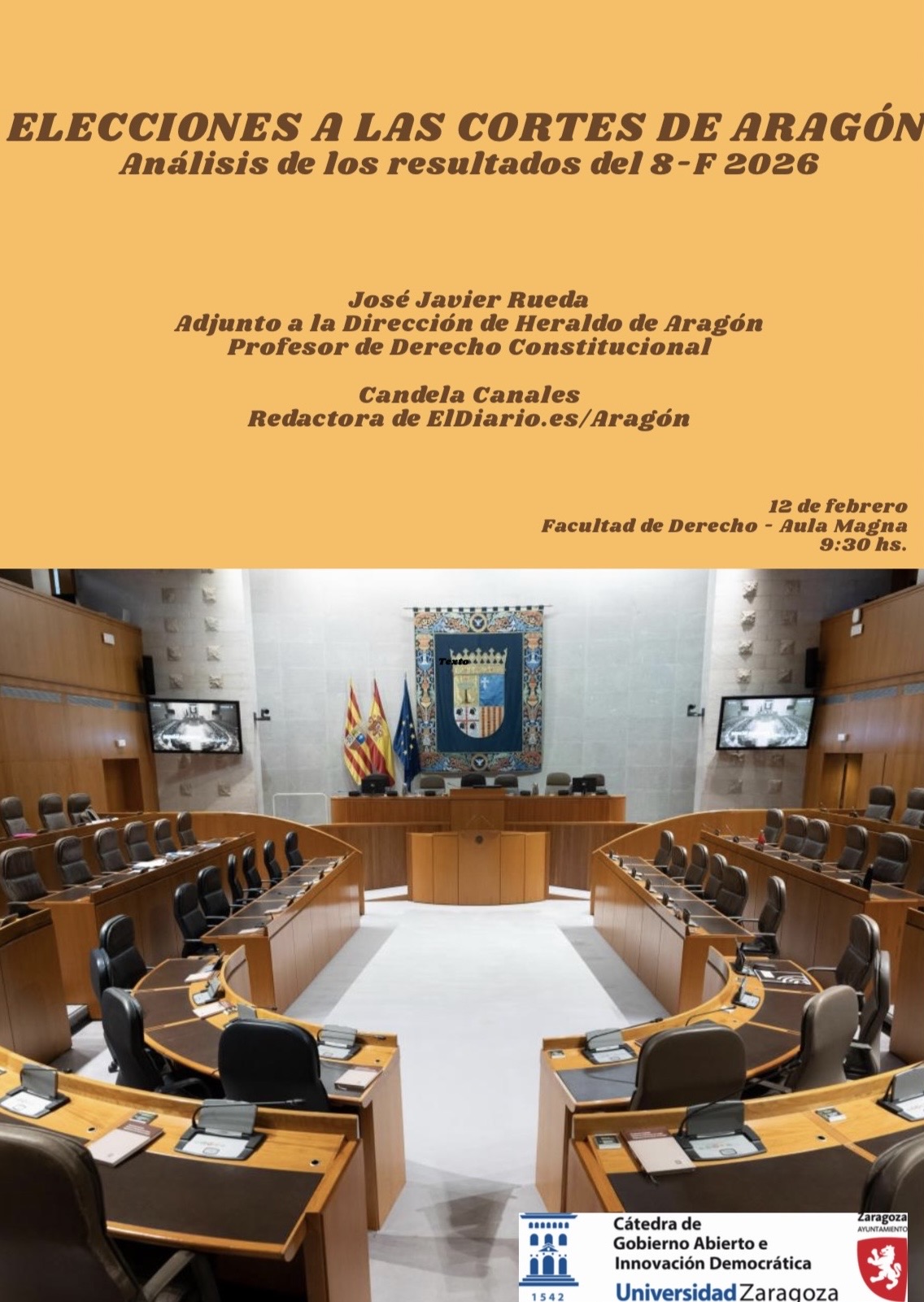 Participarán los periodistas Candela Canales y Javier Rueda, quien también es profesor de Derecho Constitucional en la Universidad de Zaragoza.