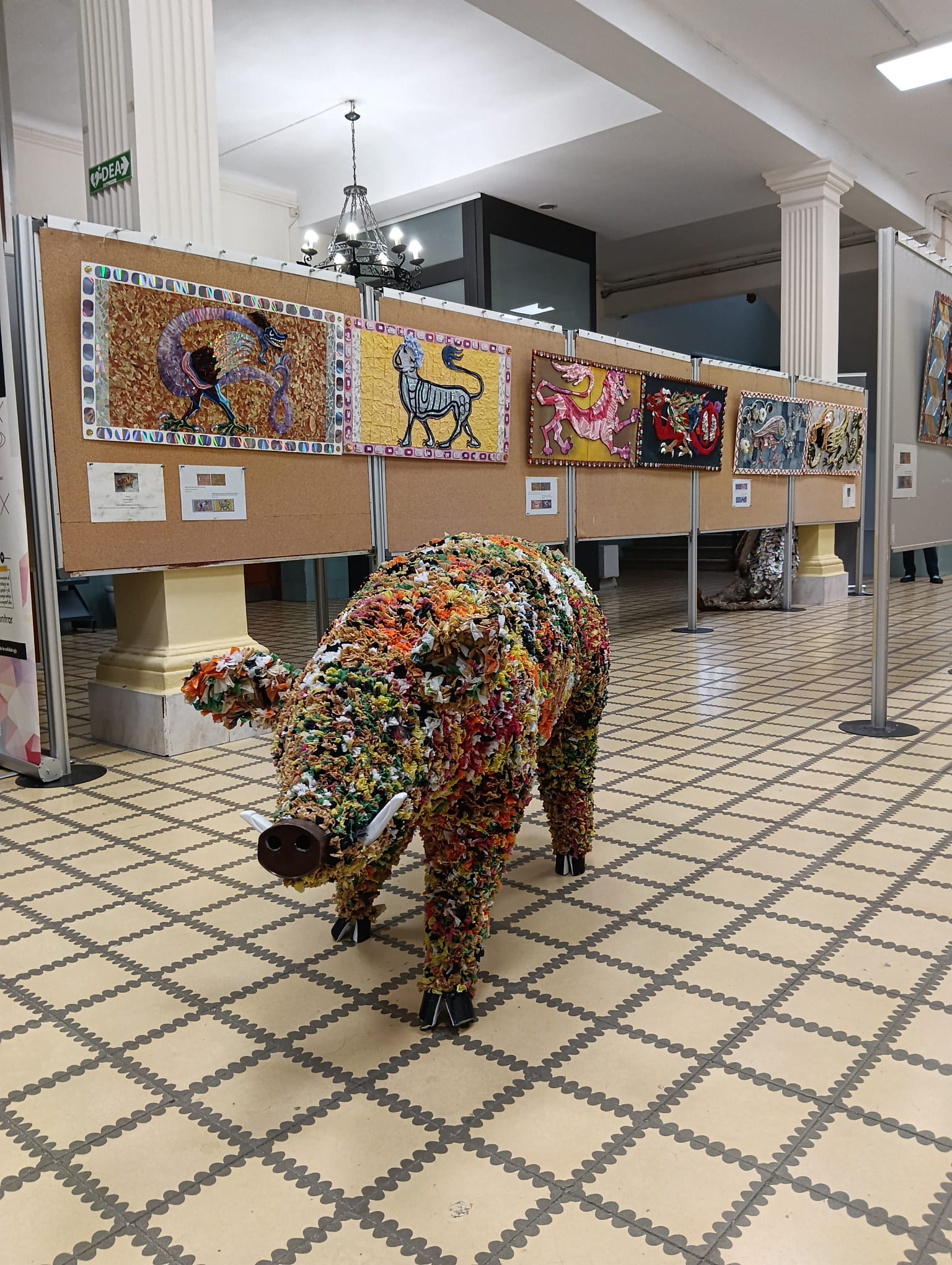 ‘Trash + Animales fantásticos y donde encontrarlos’ recoge trabajos que reinterpretan, bidimensional y tridimensionalmente, el bestiario de la techumbre mudéjar de la catedral de Teruel. Este proyecto artístico de autoría colectiva arrancó con una fase online en la que trabajaron conjuntamente los autores portugueses y españoles. Posteriormente la creación material de las piezas, a partir de material reciclado, se hizo en los laboratorios de Bellas Artes de los campus de Teruel y de Oporto.