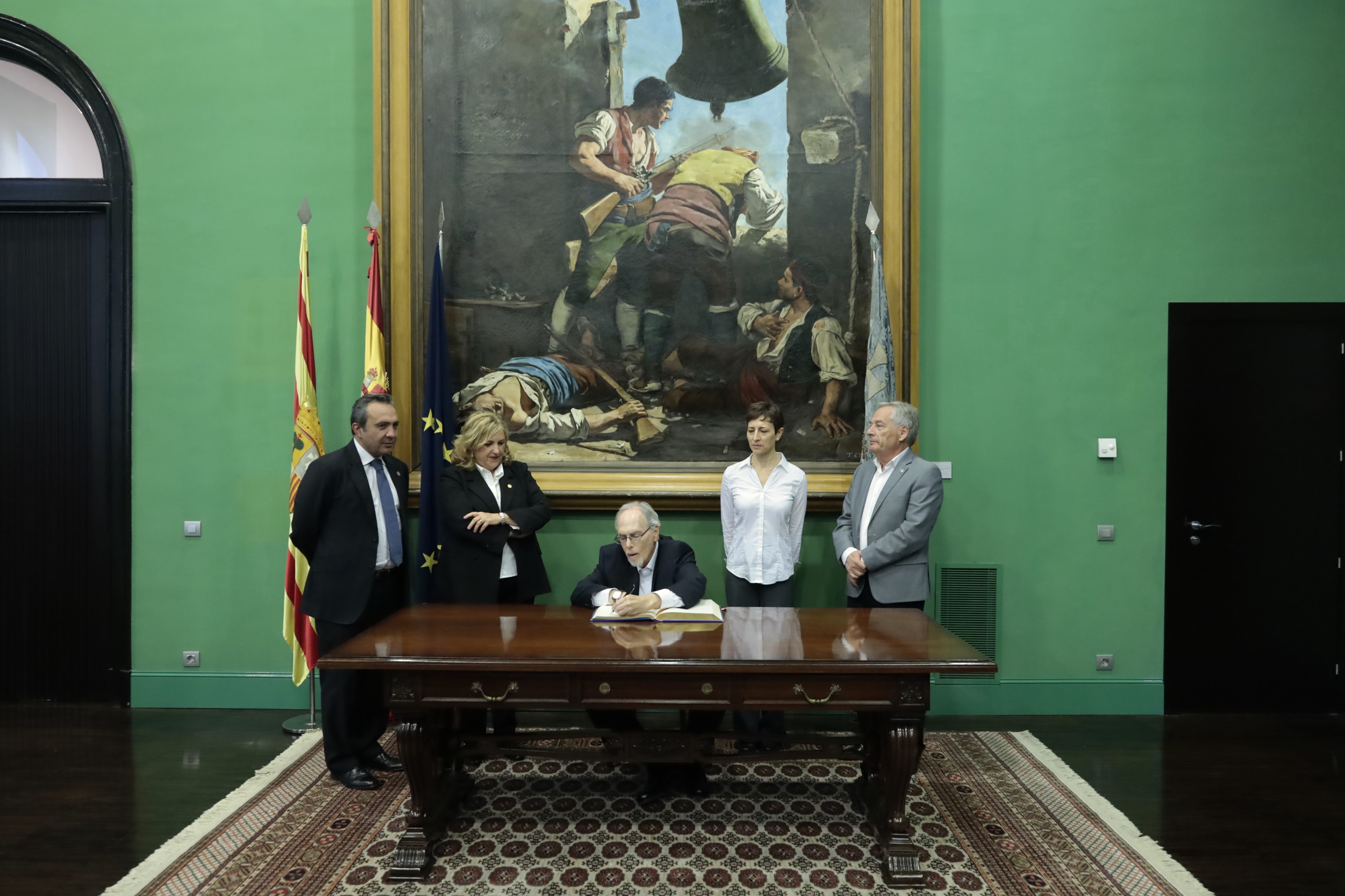 A continuación, el secretario general de la Universidad de Zaragoza ha leído el acuerdo del Consejo de Gobierno en el que se nombra doctor honoris causa a Alan E. Gelfand. Tras esta lectura, la madrina, Ana Carmen Cebrián Guajardo y el padrino, Gerardo Sanz Sáiz, precedidos por los maceros, han ido a buscar al candidato, que esperaba en el exterior de la sala. Tras la presentación ante la rectora y pronunciado el elogio por la madrina, se ha procedido a la investidura del nuevo doctor honoris causa, quien ha recibido el birrete de manos de la madrina y ha pasado a jurar su cargo.