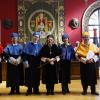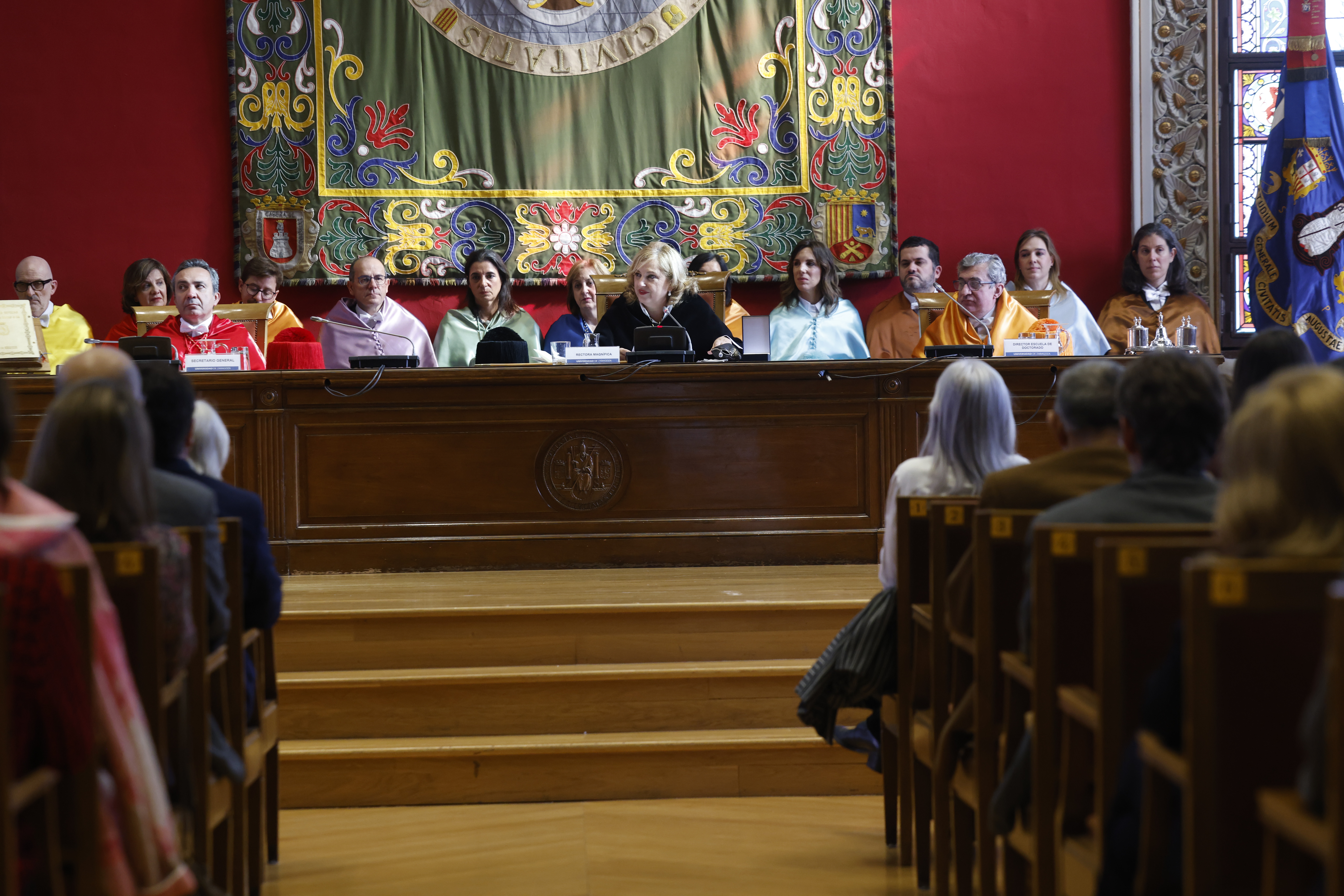 El acto ha comenzado a las 12 horas con la reunión del claustro togado y autoridades, momento en el que se ha formado la comitiva académica. Esta, precedida de los maceros, se ha dirigido al Paraninfo mientras el coro interpretaba obras de su repertorio. Una vez en sus estrados, han permanecido en pie con la cabeza descubierta mientras el coro interpretaba el Veni, Creator Spiritus.