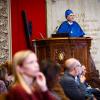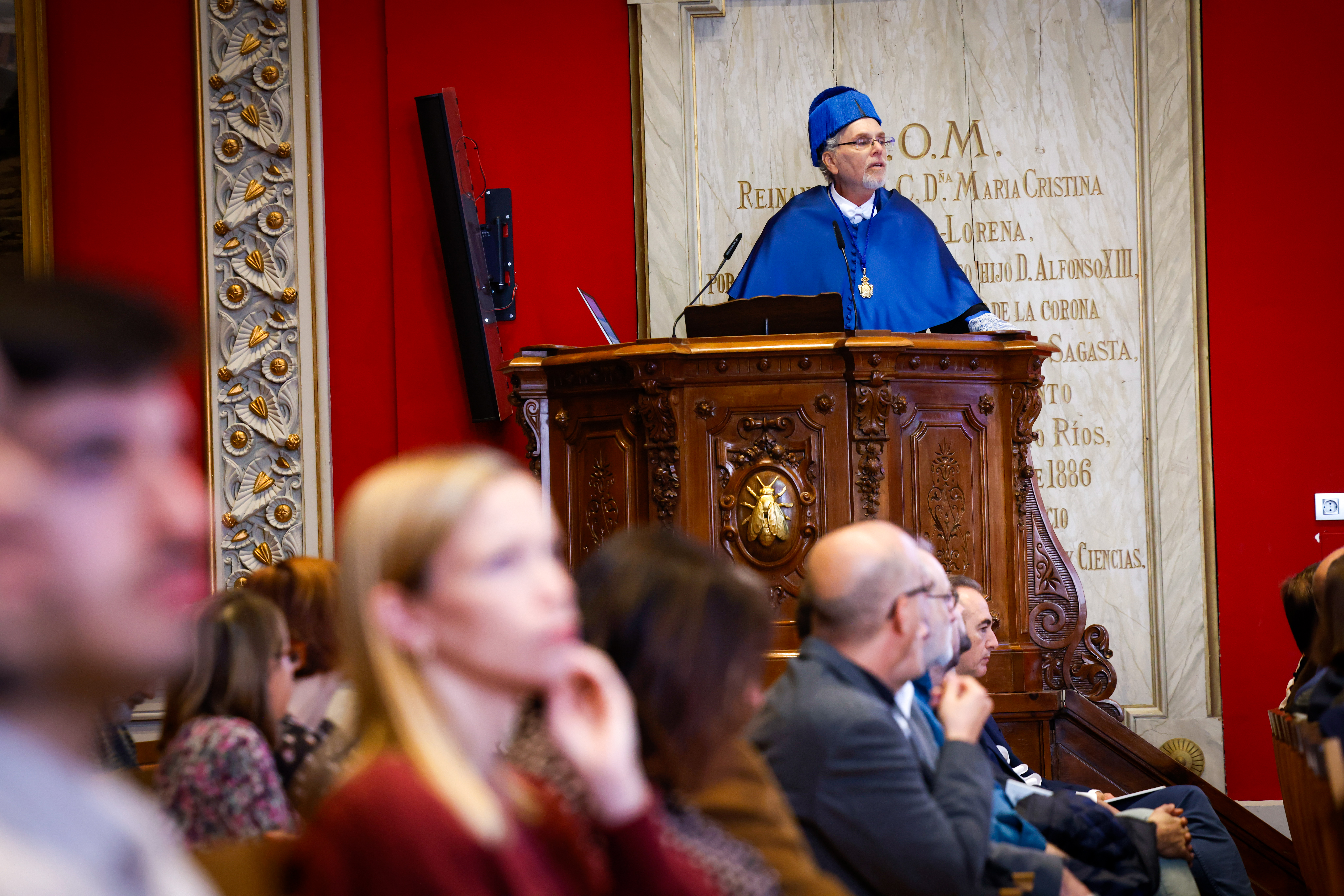Por último, la rectora ha impuesto la medalla y ha entregado el título de doctor honoris causa a Alan Gelfand, quien, precedido de los maceros, se ha dirigido a la cátedra para pronunciar su discurso.