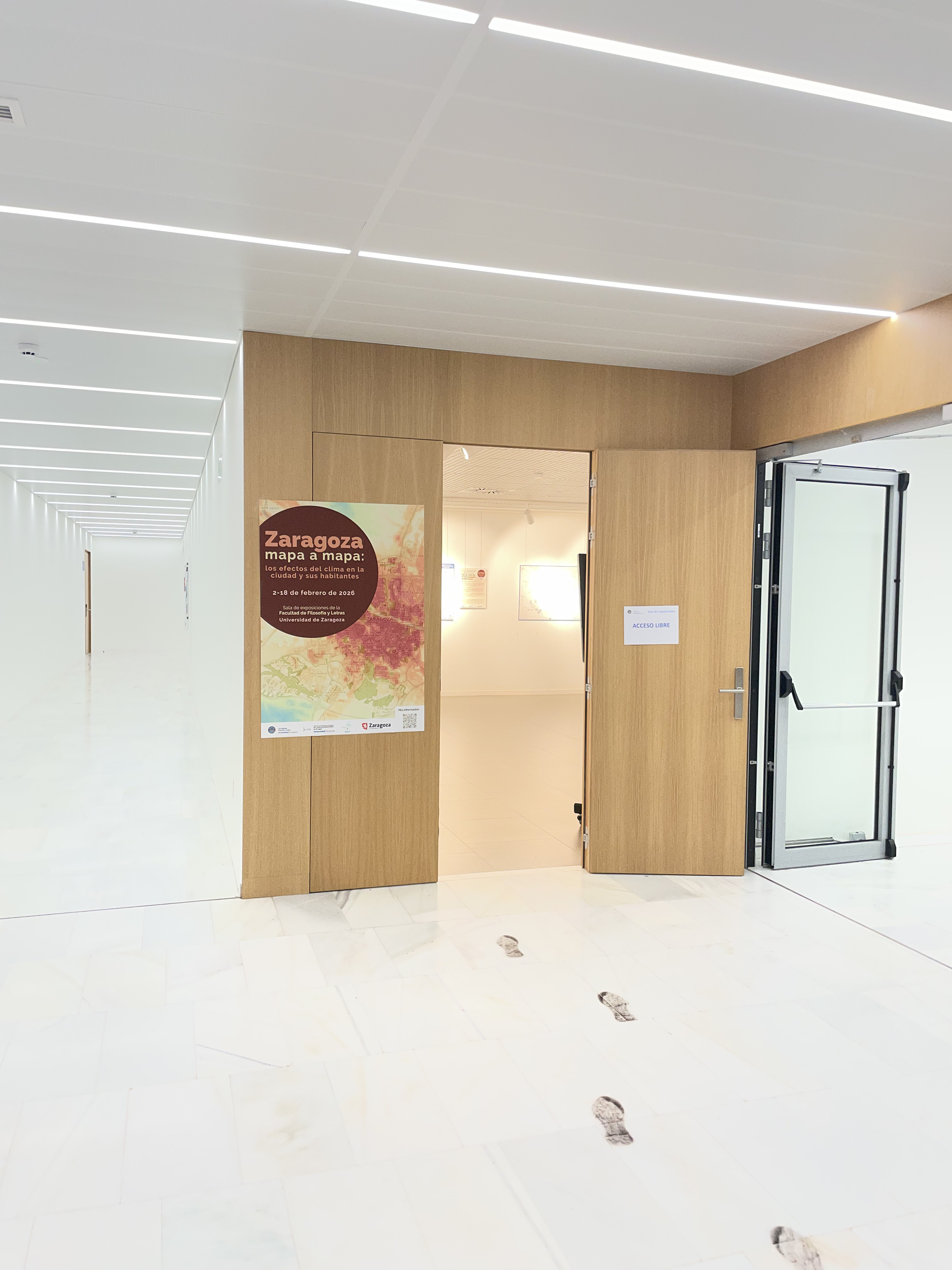“Zaragoza, mapa a mapa” presenta una decena de mapas temáticos y materiales divulgativos desarrollados para el Ayuntamiento de Zaragoza por la Cátedra Territorio, Sociedad y Visualización Geográfica, en colaboración con el Grupo de Estudios de Ordenación del Territorio (GEOT) y el grupo Clima, Agua, Cambio Global y Sistemas Naturales (IUCA–Unizar). La muestra se dirige tanto al público general como a profesionales, estudiantes y responsables públicos, con el objetivo de acercar el conocimiento científico a la ciudadanía y fomentar una reflexión colectiva sobre el futuro climático, social y territorial de Zaragoza.
