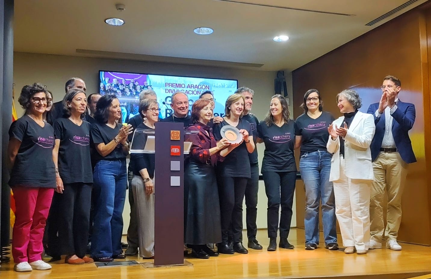 Asimismo, la Fundación también reconoció el trabajo de divulgación científica del grupo RISArchers, formado por más de 50 investigadores/as monologuistas de la Universidad de Zaragoza, y que desde hace diez años acercan la ciencia, el conocimiento y años de investigación en un formato cercano, directo, atractivo y breve como es el monólogo. Este grupo cuenta con alrededor de 50 integrantes y ha actuado ante más de 15.000 personas desde su constitución en 2015. Precisamente, desde el comienzo de este nuevo curso académico, RISArchers ha actuado en el bar Rock and Blues (9 sept) de Zaragoza, en la Noche europea de los investigadores en Huesca (Bar Bendita Ruina) y en Teruel (Hotel Palacio de la Marquesa (26 sept); en el X aniversario del Instituto de Investigación Agroalimentaria de Aragón (IA2); en la final del concurso Tesis en 3 minutos de Campus Iberus (Paraninfo, Zaragoza) y en el Festival Ecocomedy del Gobierno de Aragón en La Alfranca (26 de octubre).